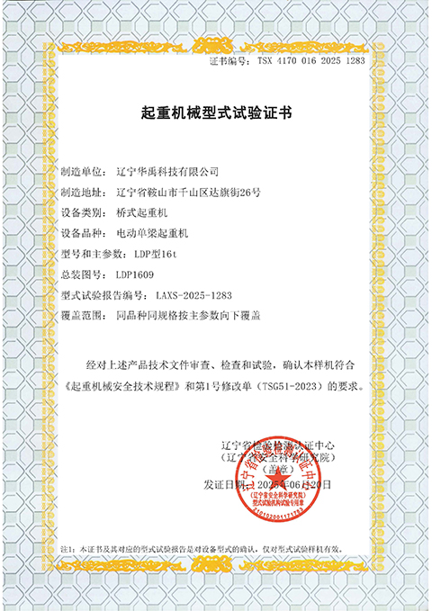 LDP电动单梁型式试验合格证
